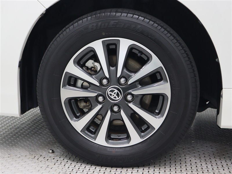 切削光輝加工にダークグレーメタリック塗装を施した15インチアルミホイールを装着しています。タイヤサイズ195/65R15