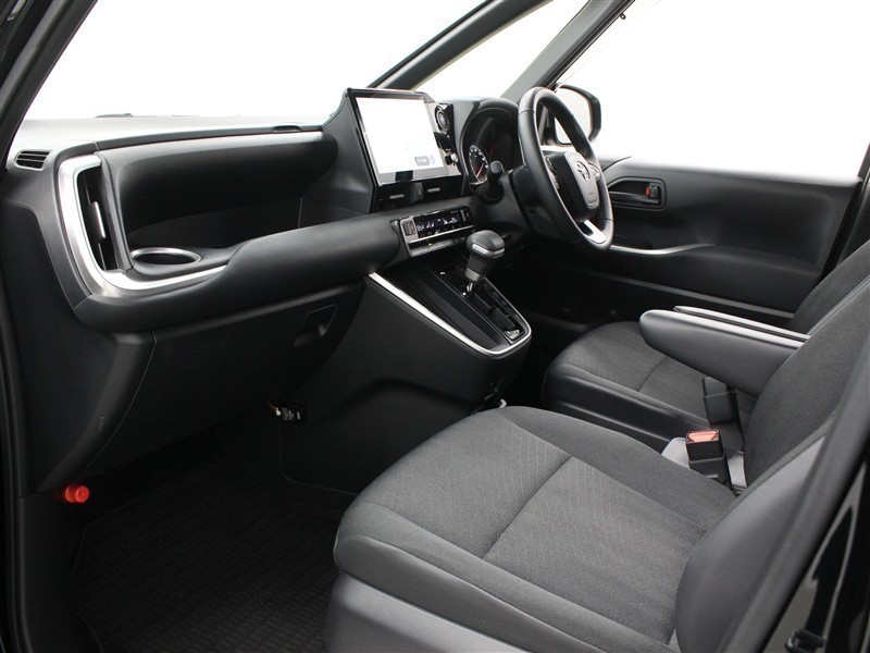 水平基調で低くワイドに構えたインストルメントパネル、ドアトリムに加え、アシストグリップやエアコン吹き出し口など機能的に配列したルーフ周りが、スッキリとした見晴らしの良い開放的空間を実現しています。
