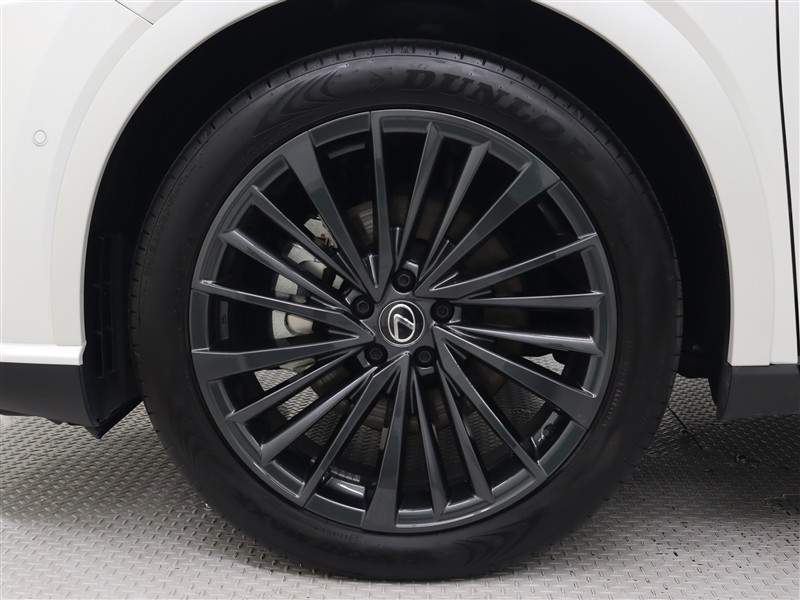 ダークプレミアムメタリック仕上げの純正アルミホイールは精度が高く、走行の安定性が優れています。タイヤサイズは235/50R21です。