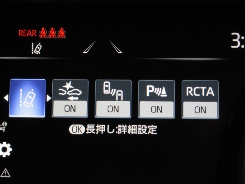 安全装備であるブラインドスポットモニター[BSM]、リヤクロストラフィックオートブレーキ[パーキングサポートブレーキ(後方接近車両)]が装着されています。