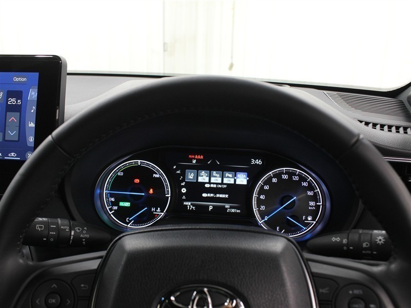 マルチインフォメーションディスプレイ内の表示切替やオーディオなどの操作を、ステアリングから手を離さずに行うことができるステアリングスイッチ装備です。