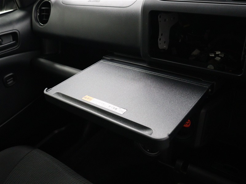 ビジネスシーンをサポートする、A4サイズのノートパソコンや弁当も置ける大型のインパネテーブルが設置されています。
