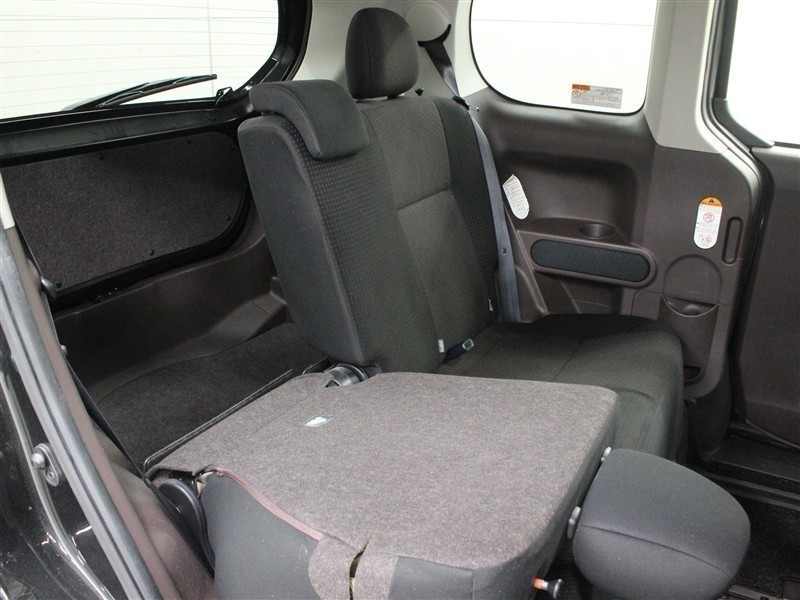 リヤシートのクッション部分が跳ね上げれば、自転車も電動スライドドアから室内へ積み込めます。