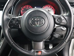 専用小径本革巻き3本ステアリングホイール(シルバーステッチ+GRエンブレム+スポーク部:ダークシルバー塗装)や専用オプティトロンメーター、アルミペダルなどが採用されたスポーティなインテリアです。