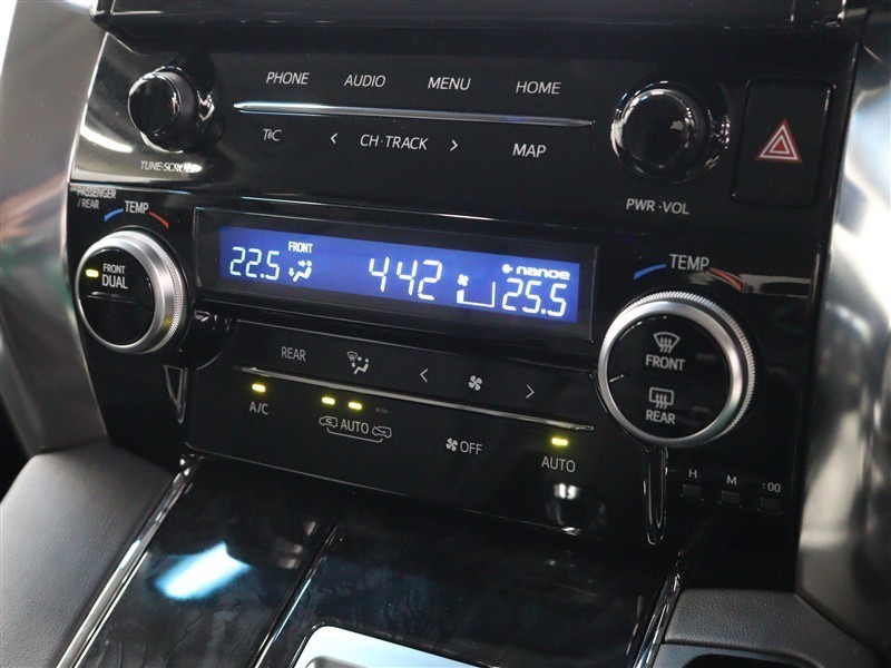 左右独立温度コントロールフルオートエアコン!運転席、助手席それぞれ独立して温度設定が可能です。ナノイーも搭載され、室内空間は快適です。