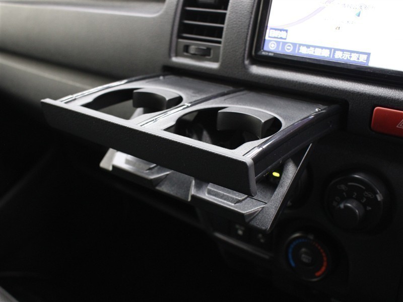 必要な時だけ引き出して使える、収納式ドリンクホルダーが備えられています。