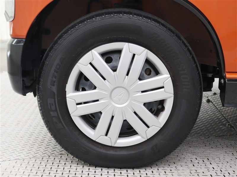 足元を汚れから守りスムーズな空気の流れに貢献するフルホイールキャップを装着しています。タイヤサイズ145/80R12