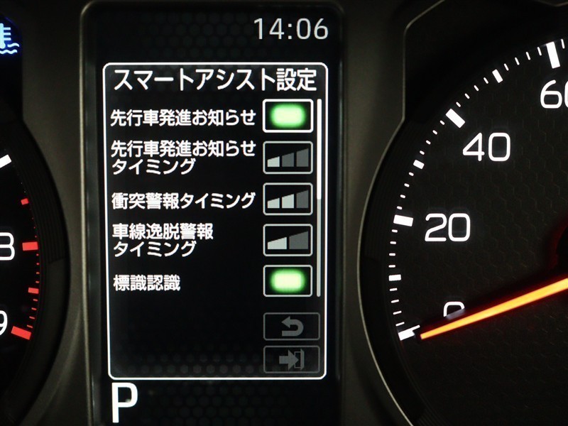 衝突回避支援ブレーキ機能・衝突警報機能の対応速度を向上させ、従来の車両・歩行者に加え、二輪車・自転車も追加し、夜間の歩行者検知も可能とした「スマートアシスト」が装備されています。