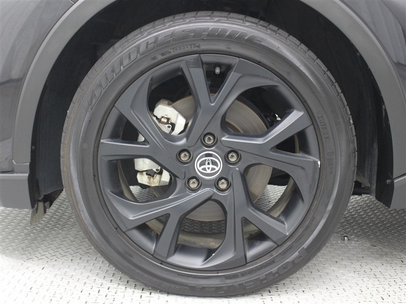 18インチアルミホイール(マットブラック塗装+ダークスモークメッキナット/センターオーナメント付)が装着されています。タイヤサイズ225/50R18