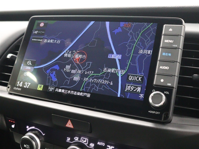 安全を考慮し、視線移動の少ない位置にセットされた純正9インチSDナビ!CD、DVDビデオ、フルセグTVに対応でUSB端子も備えられています。