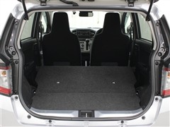 リヤシートを倒してスペースを広げた状態です。