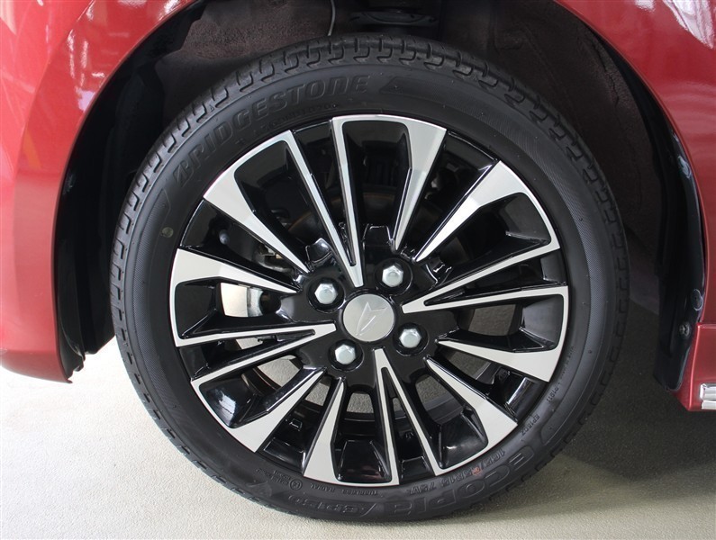 15インチアルミホイール(切削)が装着されています。タイヤサイズ165/55R15