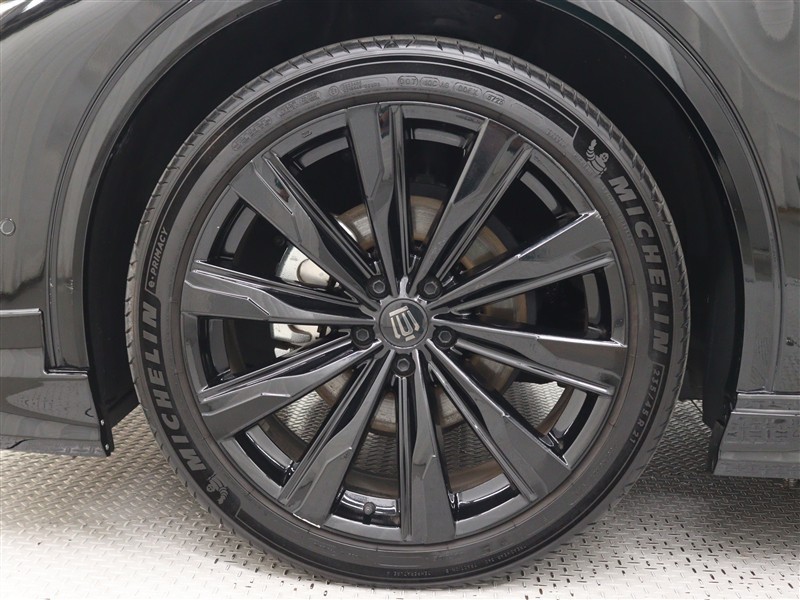 21インチアルミホイール(グロスブラック塗装)&センターオーナメントが装着されています。タイヤサイズ235/45R21