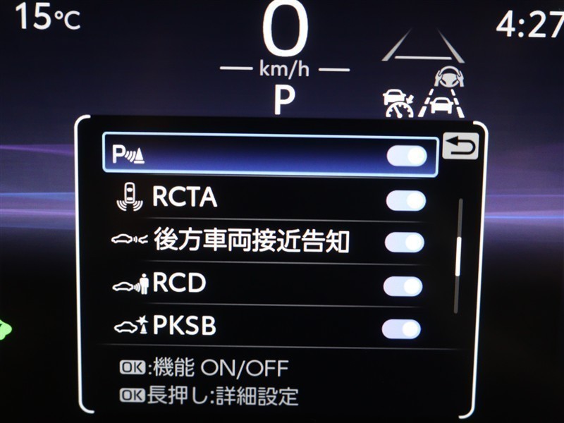 後方から接近する車両や歩行者を検知し、衝突被害の軽減に寄与するパーキングサポートブレーキ(後方接近車両・後方歩行者)が装備されています。