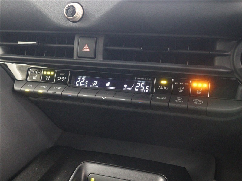 左右独立温度コントロールフルオートエアコン!運転席、助手席それぞれ独立して温度設定が可能です。ナノイーXも搭載され、室内空間は快適です。