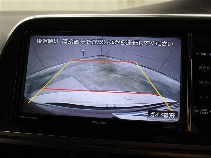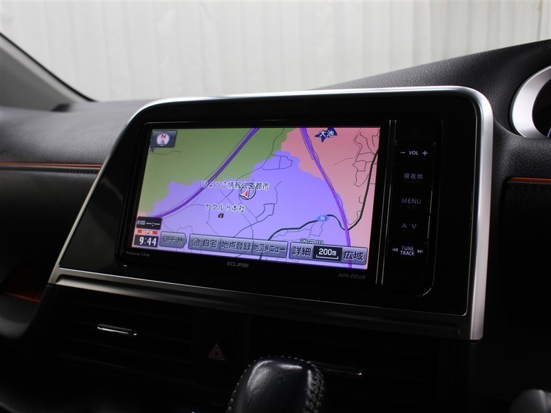 安全を考慮し、視線移動の少ない位置にセットされたイクリプスのSDナビ!CD、DVDビデオ、フルセグTVに対応しています。