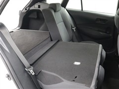 ラゲージ側面のレバーを引くだけでシートバックが前へ倒れ、さらにワイドなスペースが出現します。