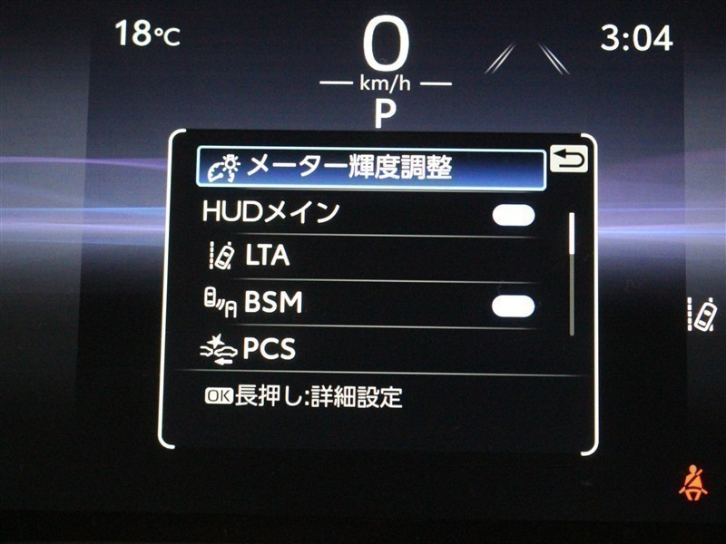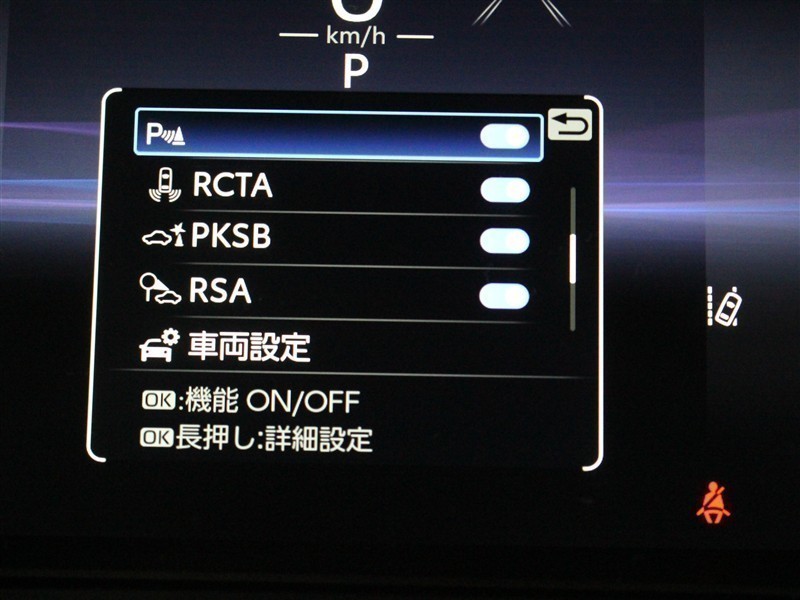 安全装備であるブラインドスポットモニター(BSM)、パーキングサポートブレーキ(前後方静止物・後方接近車両)が装着されています。