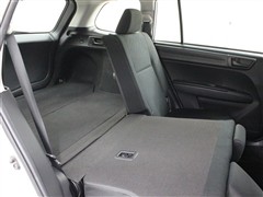 ラゲージ側面のレバーを引くだけでシートバックが前へ倒れ、さらにワイドなスペースが出現します。