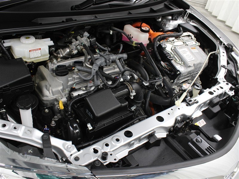 1NZ-FXE型 1.5L 直4 DOHCエンジンと1LM型 交流同期電動機のハイブリッドシステム搭載、FF駆動です。