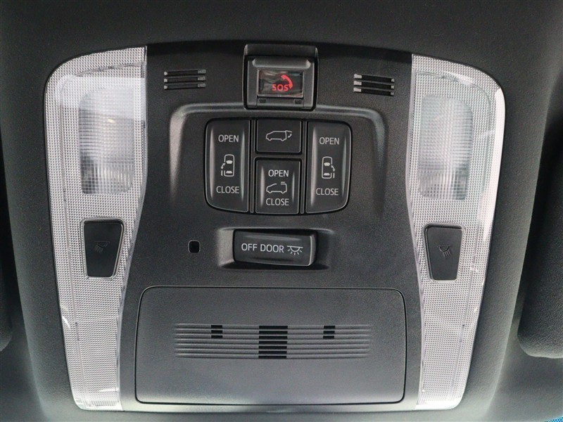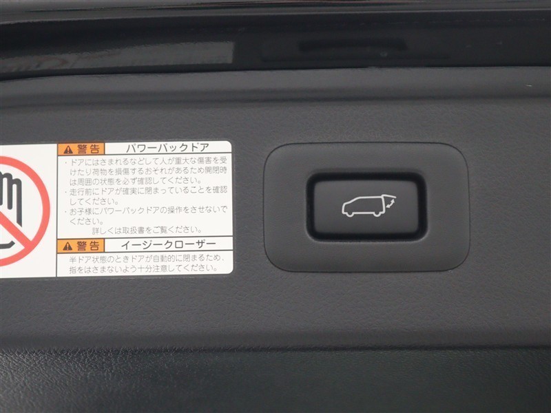 パワーバックドア(挟み込み防止機能付)を装備しています。操作はスマートキー、オーバーヘッドコンソール部、バックドア内側下部の各スイッチで行えます。