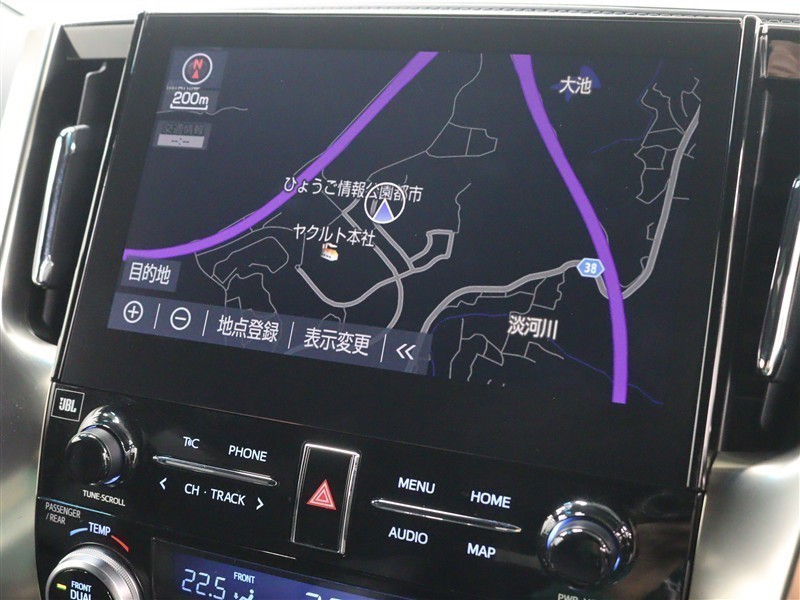 SDナビ+JBLプレミアムサウンドシステム!10.5インチディスプレイを搭載。CD、DVDビデオ、Blu-ray、フルセグTVに対応で、USB端子も装備しています。(T‐Connectは別途有料)