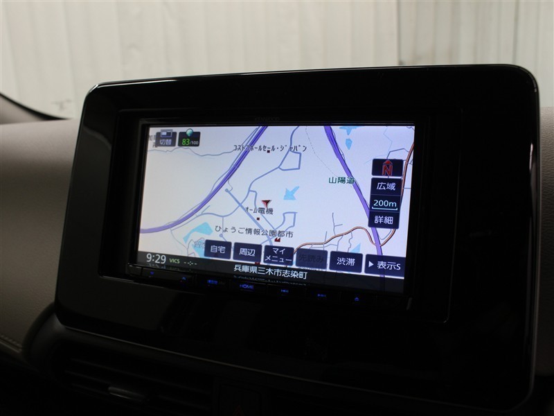 安全を考慮し、視線移動の少ない位置にセットされたケンウッドのメモリーナビ!CDに対応でUSB/AUX端子も備えられています。