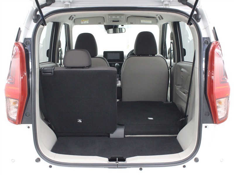 リヤシートを倒してスペースを広げた状態です。
