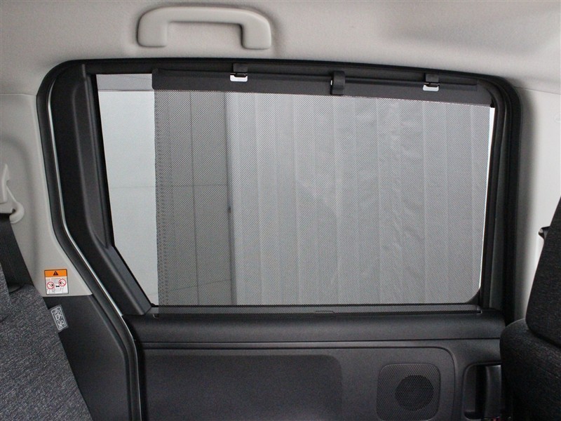 スライドドアに収納式のサンシェードを装備しています。