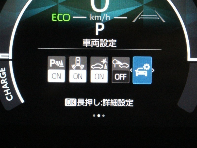 駐車場から後退する際に、左右後方から接近してくる車両を検知してドアミラー内のインジケーター点滅とブザーにより注意を喚起するパーキングサポートブレーキ(後方接近車両)が装着されています。