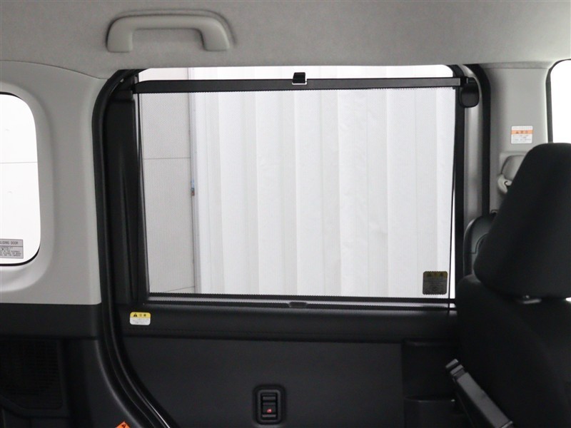 スライドドアに収納式のサンシェードを装備しています。