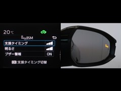 車線変更時などに、ドアミラーでは確認しにくい後側方エリア(ブラインドスポット)に存在する車両をレーダーで検知。警告サインをドアミラー等に表示することで、運転者に注意喚起する機能。