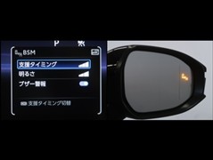 車線変更時などに、ドアミラーでは確認しにくい後側方エリア(ブラインドスポット)に存在する車両をレーダーで検知。警告サインをドアミラー等に表示することで、運転者に注意喚起する機能。