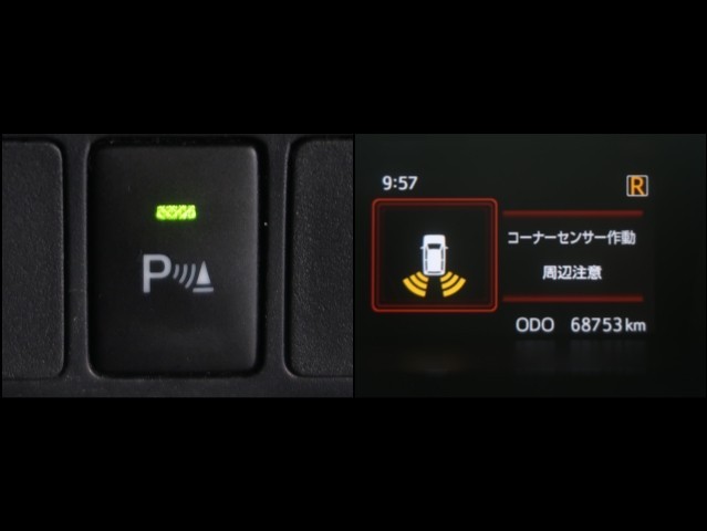 コーナーセンサーを装備。障害物までの距離に応じて警告音を変えてお知らせ。縦列駐車時や駐車場・車庫等での取り回しをサポートします。詳細は販売店スタッフまでお尋ね下さい。