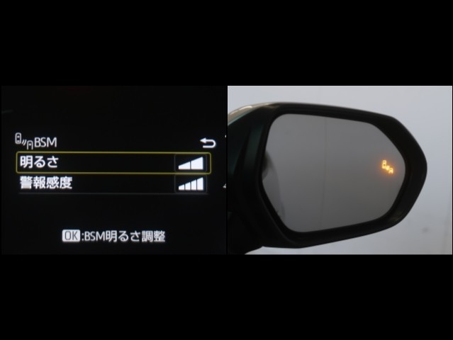 車線変更時などに、ドアミラーでは確認しにくい後側方エリア(ブラインドスポット)に存在する車両をレーダーで検知。警告サインをドアミラー等に表示することで、運転者に注意喚起する機能。