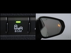 車線変更時などに、ドアミラーでは確認しにくい後側方エリア(ブラインドスポット)に存在する車両をレーダーで検知。警告サインをドアミラー等に表示することで、運転者に注意喚起する機能。