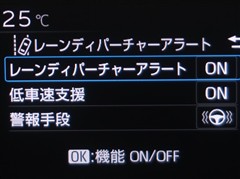 レーンディパーチャーアラートとは車線または走路からの逸脱の可能性を警告すると共に、車線または走路からの逸脱を避けるためのハンドル操作の一部を支援する機能です。詳細は販売店スタッフまでおたずねください。