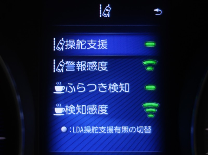 レーンディパーチャーアラートとは車線、又は走路からの逸脱の可能性を警告すると共に、車線、又は走路からの逸脱を避けるためのハンドル操作の一部を支援する機能です。詳細は販売店スタッフまでお尋ね下さい。