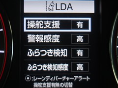 レーンディパーチャーアラートとは車線、又は走路からの逸脱の可能性を警告すると共に、車線、又は走路からの逸脱を避けるためのハンドル操作の一部を支援する機能です。詳細は販売店スタッフまでお尋ね下さい。