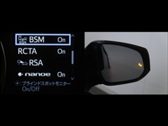 車線変更時などに、ドアミラーでは確認しにくい後側方エリア(ブラインドスポット)に存在する車両をレーダーで検知。警告サインをドアミラー等に表示することで、運転者に注意喚起する機能。
