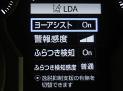 レーンディパーチャーアラートとは車線、又は走路からの逸脱の可能性を警告すると共に、車線、又は走路からの逸脱を避けるためのハンドル操作の一部を支援する機能です。詳細は販売店スタッフまでお尋ね下さい。