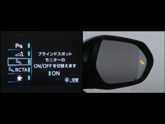 車線変更時などに、ドアミラーでは確認しにくい後側方エリア(ブラインドスポット)に存在する車両をレーダーで検知。警告サインをドアミラー等に表示することで、運転者に注意喚起する機能。