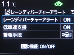 レーンディパーチャーアラートとは車線、又は走路からの逸脱の可能性を警告すると共に、車線、又は走路からの逸脱を避けるためのハンドル操作の一部を支援する機能です。詳細は販売店スタッフまでお尋ね下さい。