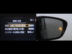 車線変更時などに、ドアミラーでは確認しにくい後側方エリア(ブラインドスポット)に存在する車両をレーダーで検知。警告サインをドアミラー等に表示することで、運転者に注意喚起する機能。