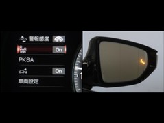 車線変更時などに、ドアミラーでは確認しにくい後側方エリア(ブラインドスポット)に存在する車両をレーダーで検知。警告サインをドアミラー等に表示することで、運転者に注意喚起する機能。