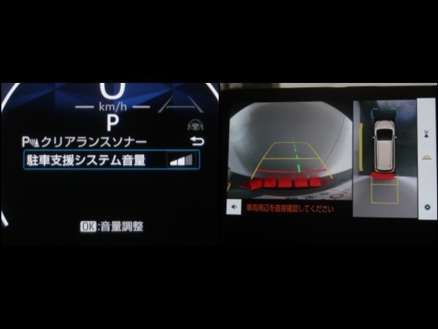 パノラミックビューモニター付きです。車両を上から見た様な映像を画面に表示。運転席からの目視だけでは見にくい、車両周辺の状況をリアルタイムでしっかり確認出来ます。