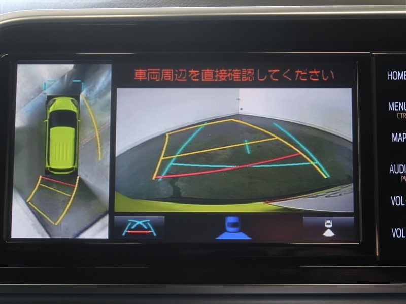 パノラミックビューモニター付きです。車両を上から見た様な映像を画面に表示。運転席からの目視だけでは見にくい、車両周辺の状況をリアルタイムでしっかり確認出来ます。