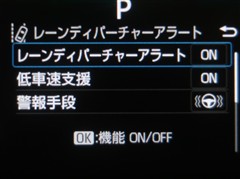 レーンディパーチャーアラートとは車線、又は走路からの逸脱の可能性を警告すると共に、車線、又は走路からの逸脱を避けるためのハンドル操作の一部を支援する機能です。詳細は販売店スタッフまでお尋ね下さい。