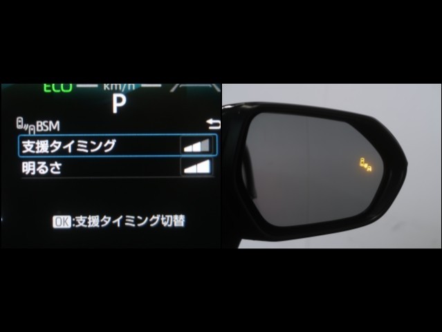 車線変更時などに、ドアミラーでは確認しにくい後側方エリア(ブラインドスポット)に存在する車両をレーダーで検知。警告サインをドアミラー等に表示することで、運転者に注意喚起する機能。