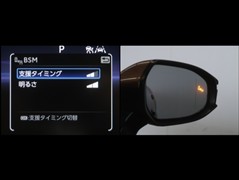 車線変更時などに、ドアミラーでは確認しにくい後側方エリア(ブラインドスポット)に存在する車両をレーダーで検知。警告サインをドアミラー等に表示することで、運転者に注意喚起する機能。